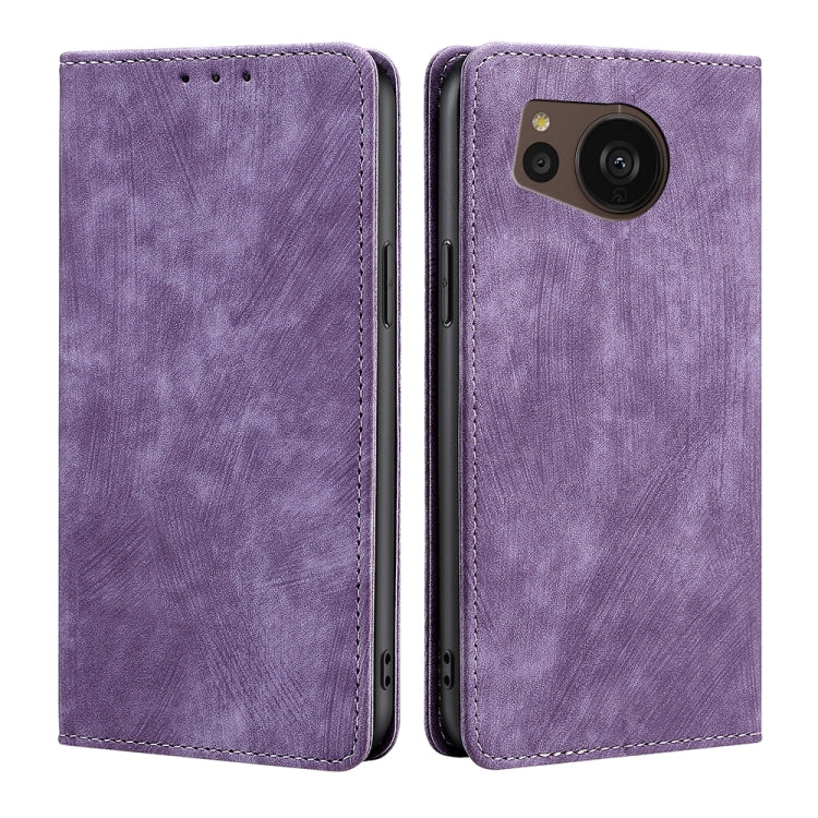 Funda para Sharp Aquos Sense7 Plus Cuero Magnética con Protección RFID y Cepillo Antirrobo (Púrpura)