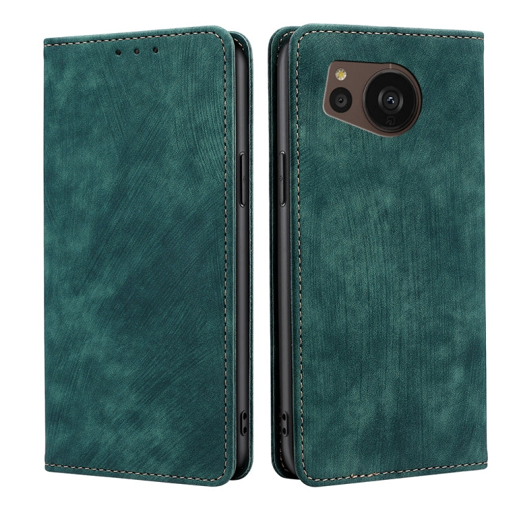 Funda de Cuero Magnética para Sharp Aquos Sense7 Plus con RFID y Cepillo Antirrobo (Verde)