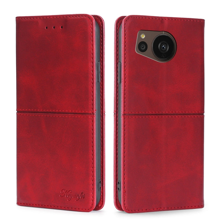 Funda de Teléfono para Sharp Aquos Sense7 Plus Cuero Magnético Textura de Vaca (Rojo)