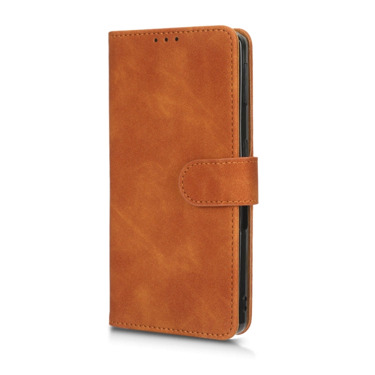 Funda Flip de Cuero para Sharp Aquos Sense 7 Plus Skin Feel Magnética (Marrón)