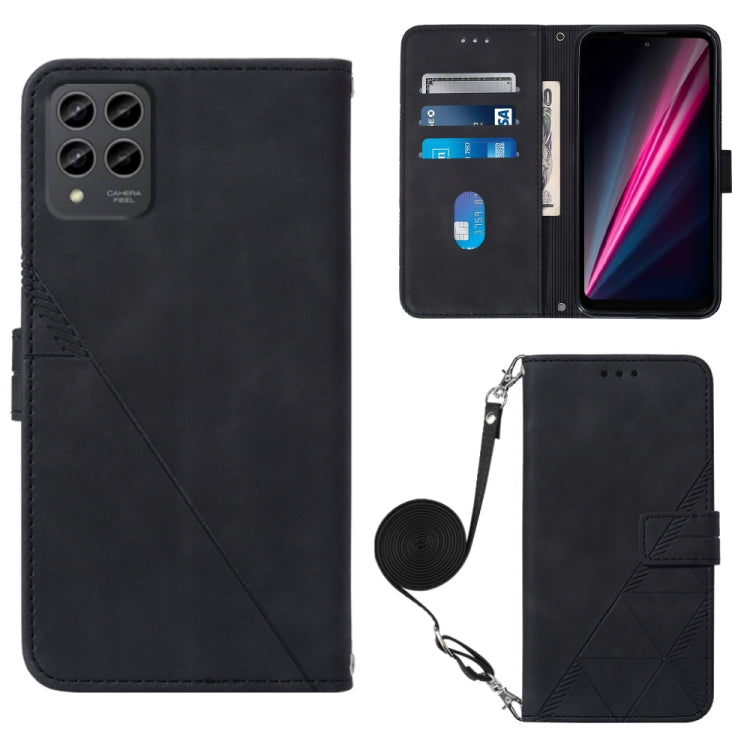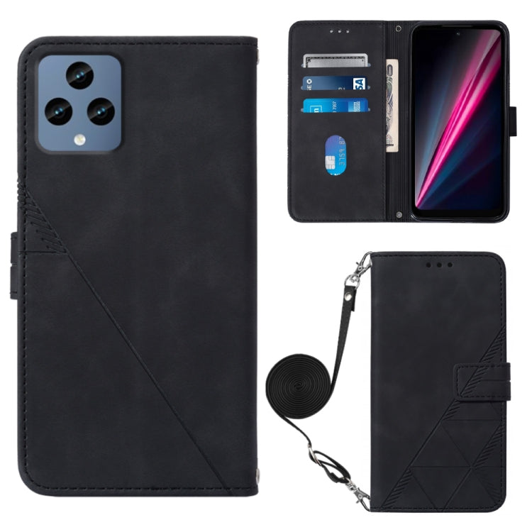 Funda de Cuero para T-Mobile Revvl 6 5G Crossbody 3D con Tapa En Relieve (Negro)