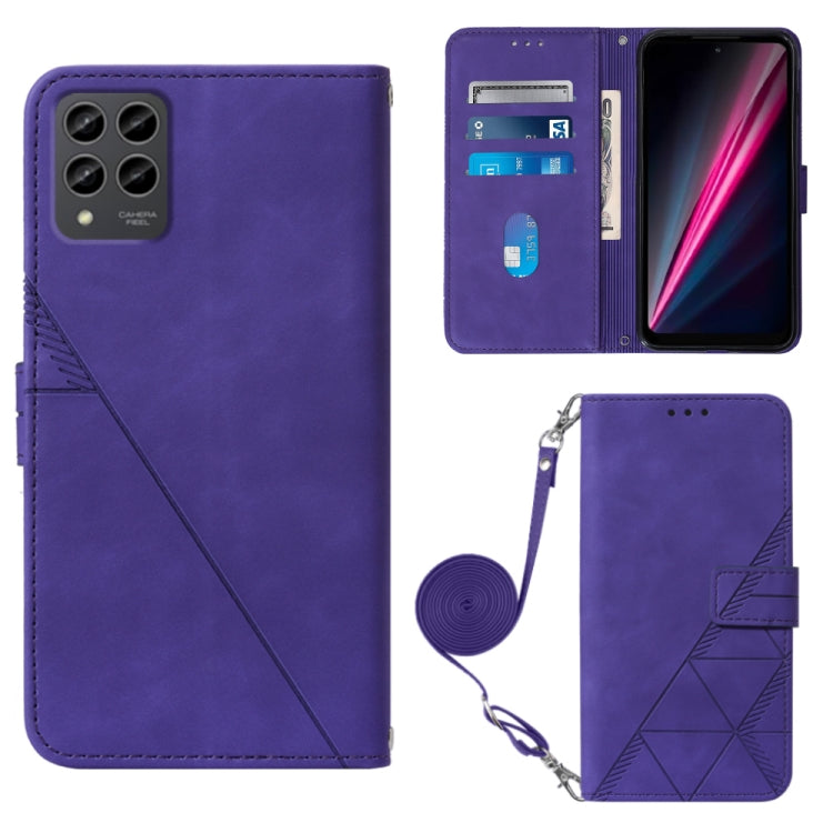 Funda de Cuero para T-Mobile Revvl 6 Pro 5G Crossbody con Tapa en Relieve (Púrpura)