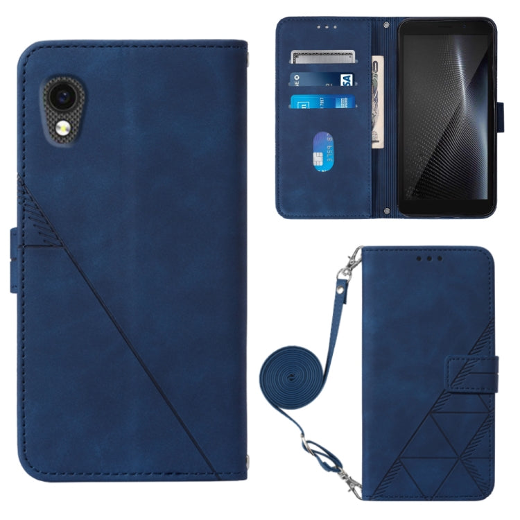 Funda de Cuero para Kyocera Android One S9 Crossbody 3D con Tapa En Relieve (Azul)