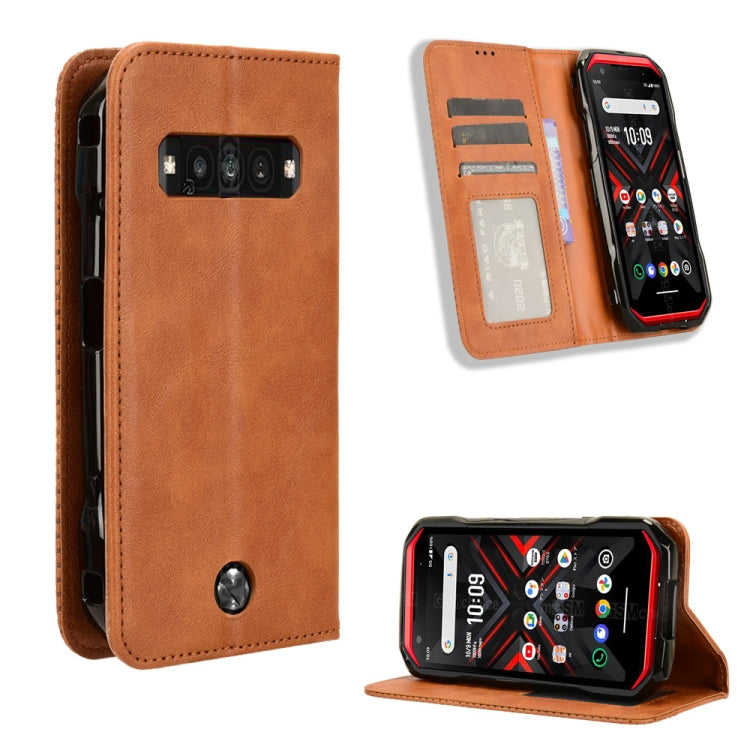 Funda para Teléfono Kyocera Torque G06 Kyg03 Cuero Textura Retro Hebilla Magnética (Marrón)