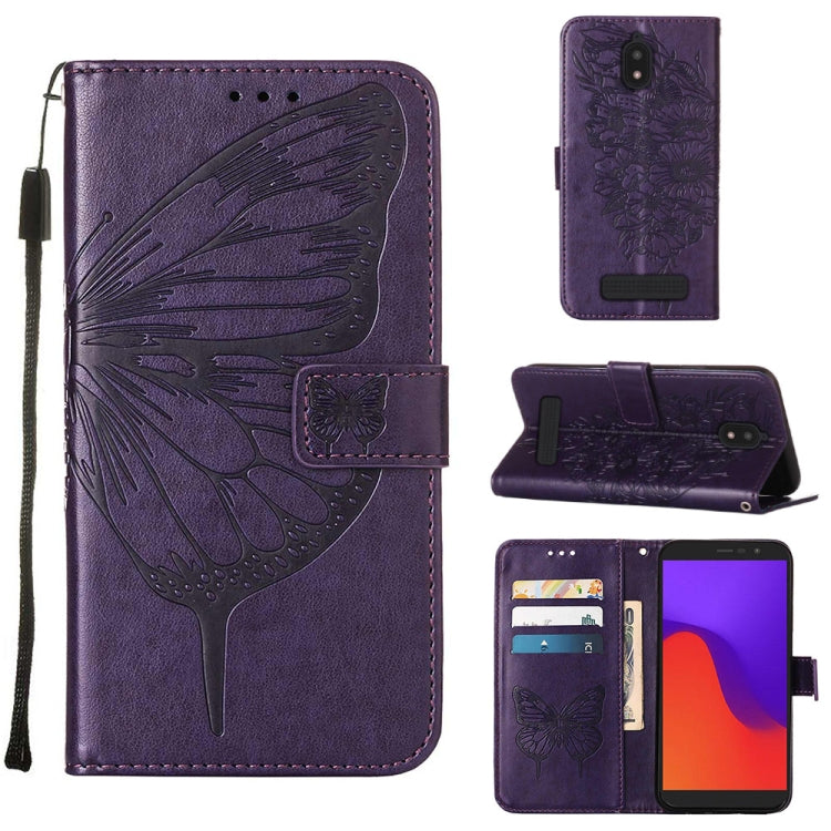Estuche para BLU View 2 2022 / 2020 de Cuero con Tapa Mariposa En Relieve (Púrpura Oscuro)