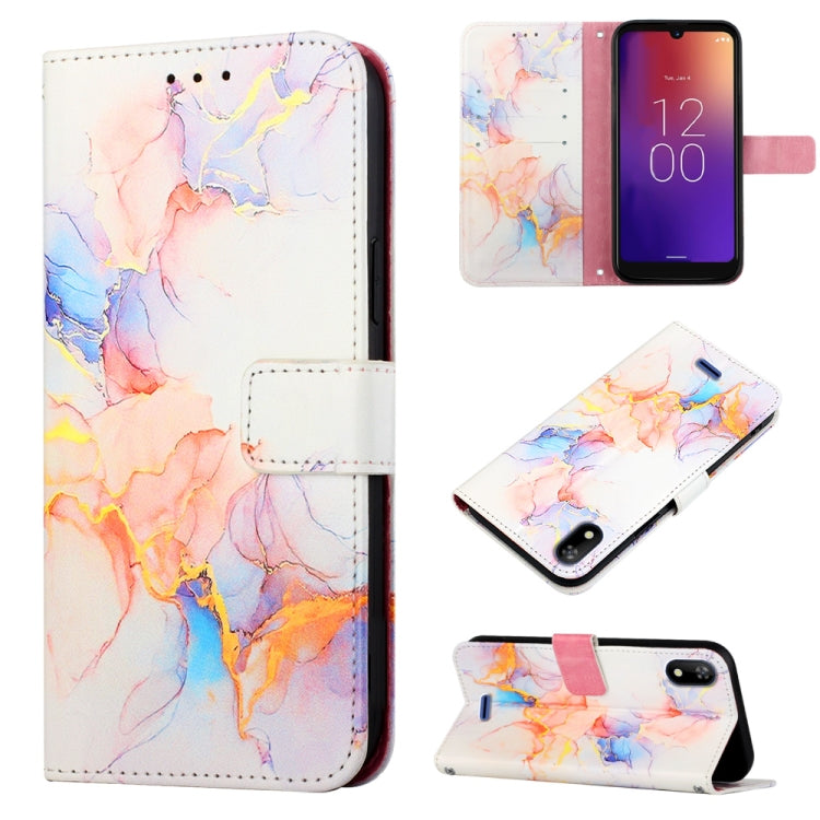 Funda de Teléfono Moxee M2160 Pt003 con Tapa de Cuero y Patrón de Mármol (Oro Rosa Púrpura)