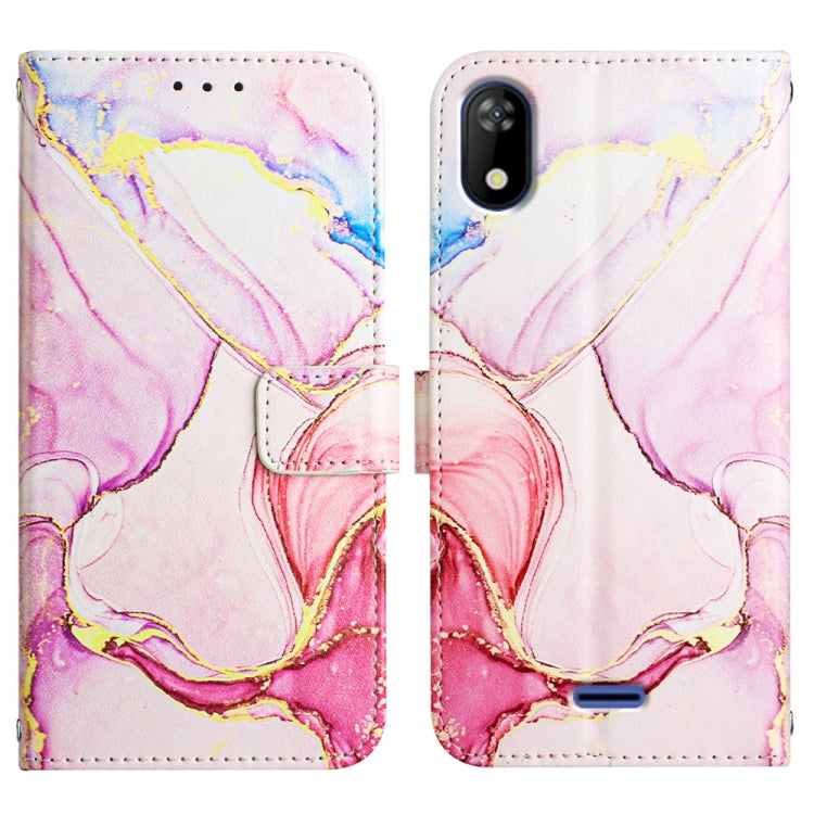Funda de Teléfono Moxee M2160 Pt003 con Tapa de Cuero y Patrón Mármol (Oro Rosa)