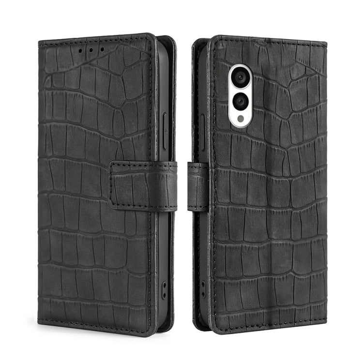 Funda de Cuero para Fujitsu Arrows N F-51C con Cierre Magnético y Textura Skin Feel Cocodrilo (Negro)
