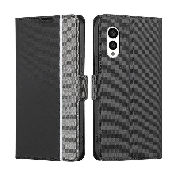 Funda de Cuero para Fujitsu Arrows N F-51C con Textura de Sarga y Botón Lateral (Negro)