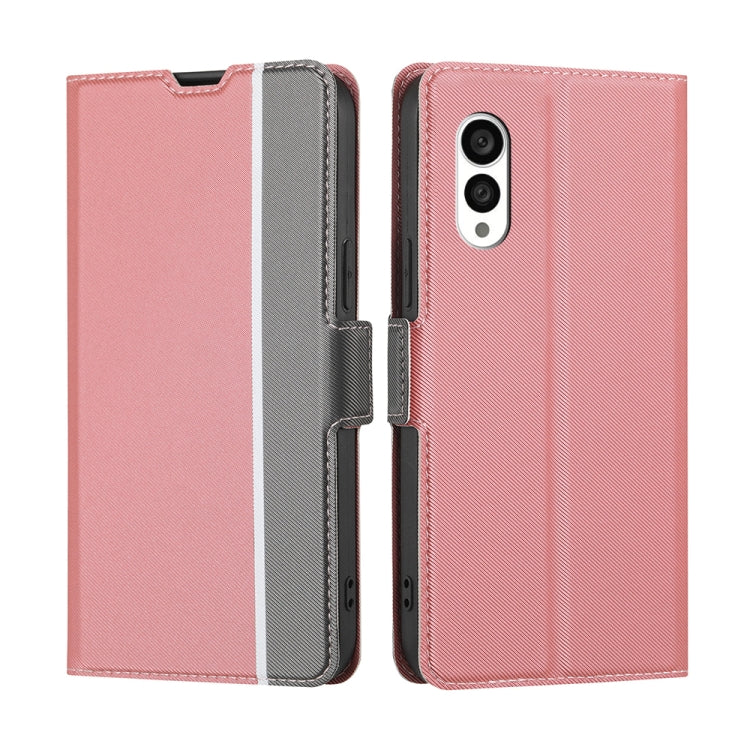 Funda de Cuero para Fujitsu Arrows N F-51C con Textura de Sarga y Botón Lateral (Rosa)