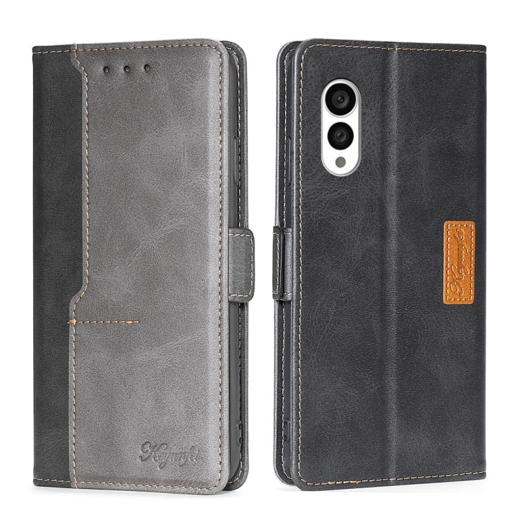 Funda de Cuero para Fujitsu Arrows N F-51C con Hebilla Lateral y Contraste (Negro + Gris)