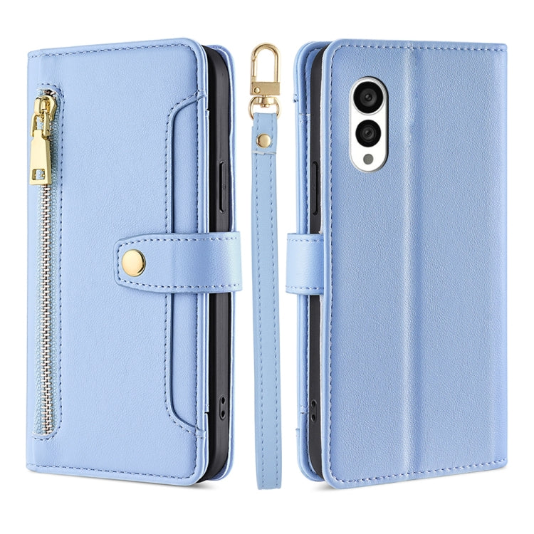 Funda de Cuero para Teléfono Fujitsu Arrows N F-51C Sheep Texture Cross-Body Zipper (Azul)