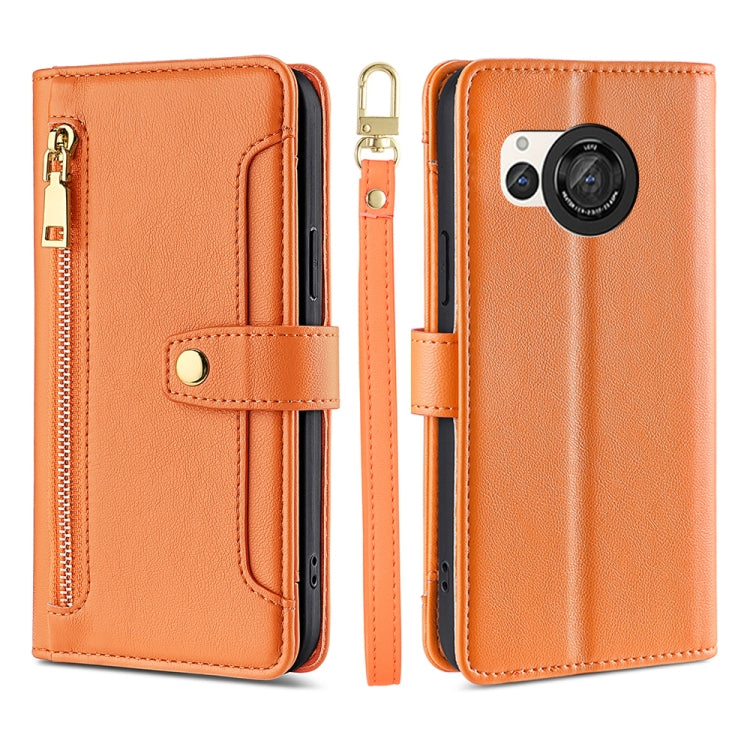 Funda de Cuero para Sharp Aquos R8 Pro Sh-51 Lite con Textura de Oveja y Cremallera Cruzada (Naranja)
