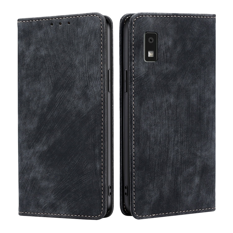 Funda de Cuero Magnética para Sharp Aqous Wish 3 con Protección RFID y Cepillo Antirrobo (Negro)