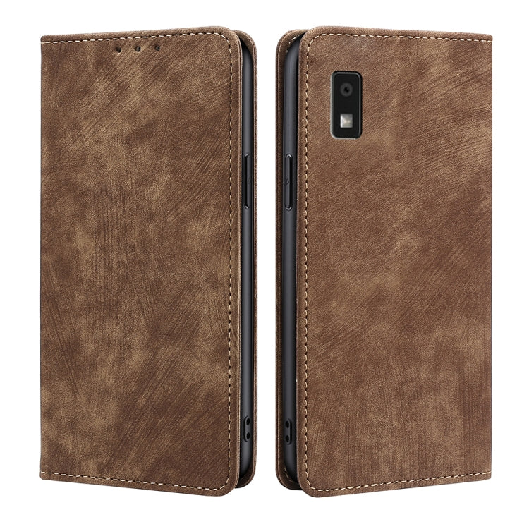 Estuche para Sharp Aquos Wish 3 de Cuero Magnético con Aceite Brillante (Marrón)