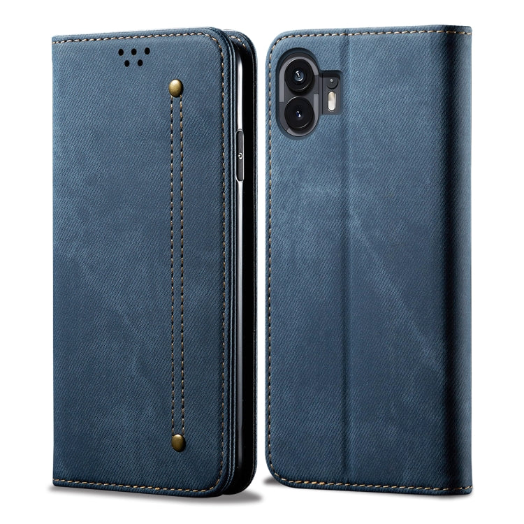 Funda de Cuero con Tapa For Nothing Phone 2 Estilo Informal Textura Mezclilla (Azul)