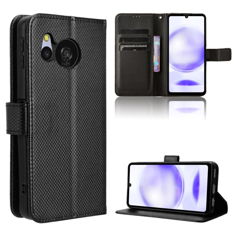 Funda de Cuero para Sharp Aquos Sense8 con Textura de Diamante (Negro)