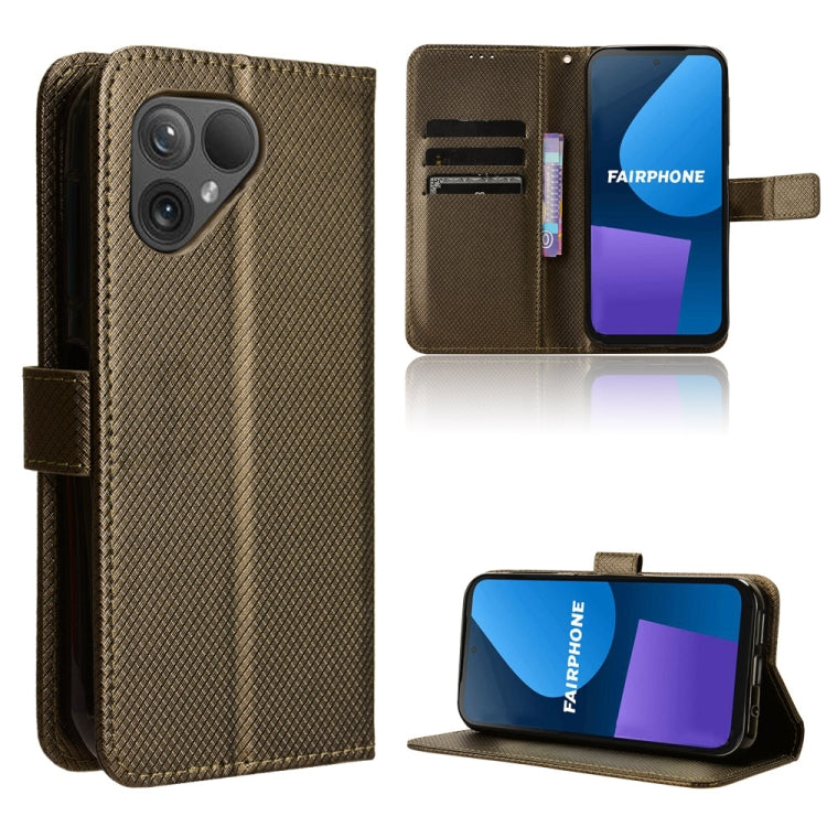 Funda de Cuero para Fairphone 5 con Textura de Diamante (Marrón)