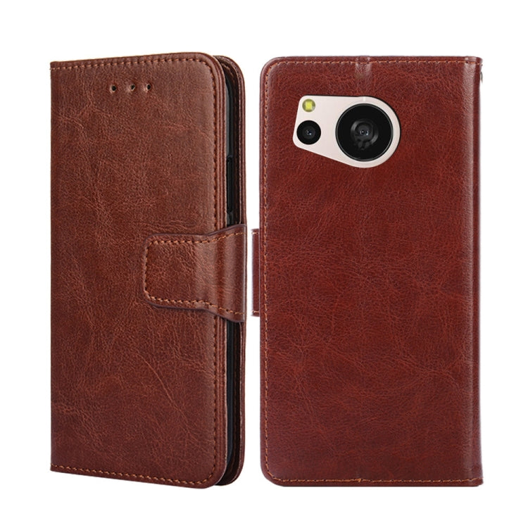 Funda de Cuero para Sharp Aquos Sense 8 con Textura de Cristal (Marrón)