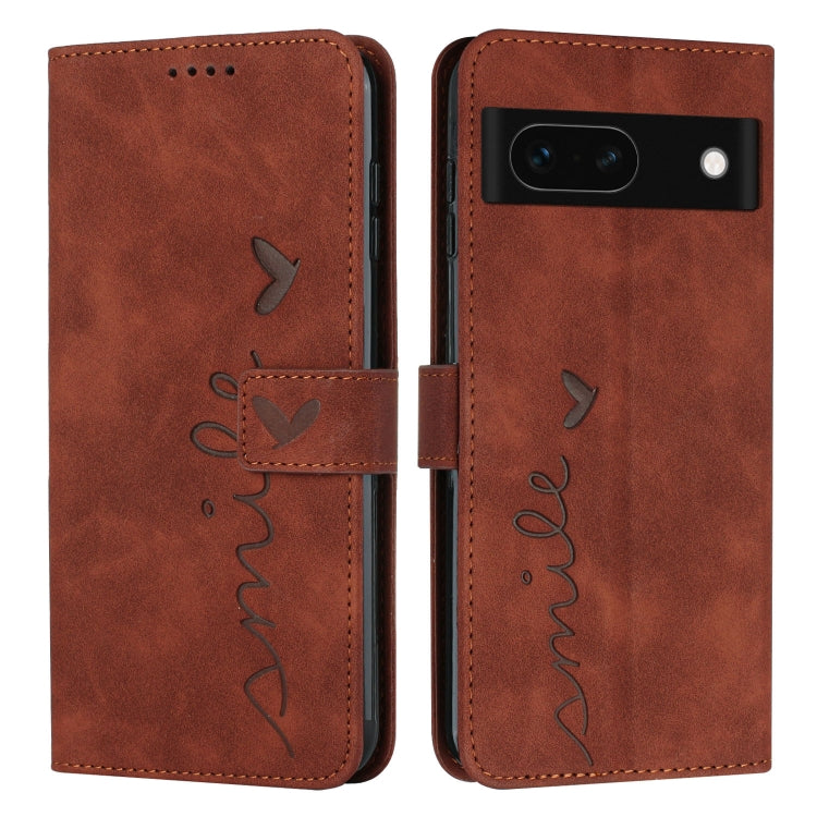 Funda para Google Pixel 8A Skin Feel Heart de Cuero en Relieve con Cordón Largo (Marrón)