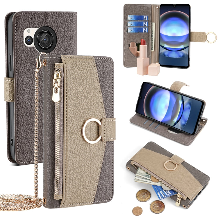 Funda de Cuero Rakuten Big S Crossbody Litchi Texture para Teléfono (Gris)
