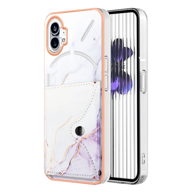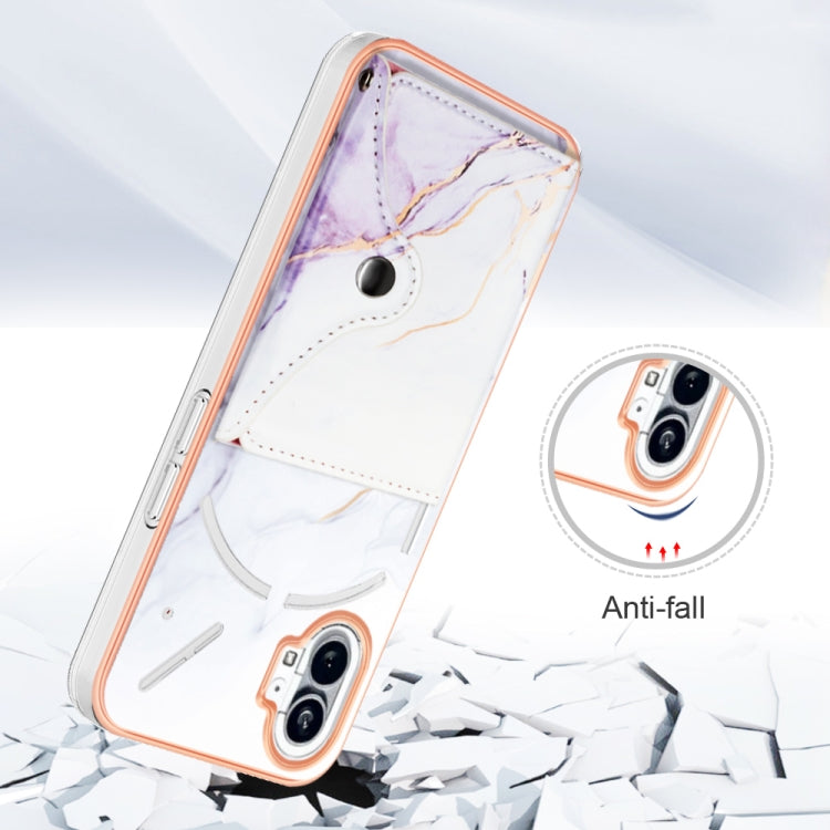 Estuche para Nothing Phone 1 con Ranura para Tarjeta IMD y Patrón de Mármol (Blanco y Morado)
