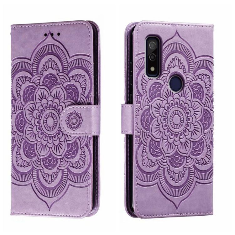 Funda de Cuero para Fujitsu Arrows U Sun Mandala con Patrón en Relieve (Púrpura)