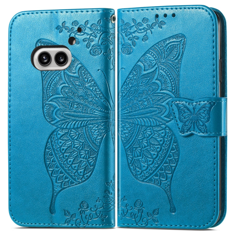 Funda para Nothing Phone 2A de Cuero con Relieve Flor de Amor y Mariposa (Azul)