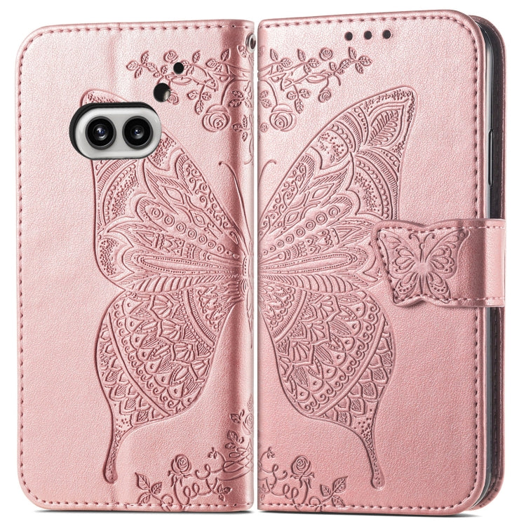 Funda para Nothing Phone 2A de Cuero con Relieve Flor de Amor y Mariposa (Oro Rosa)