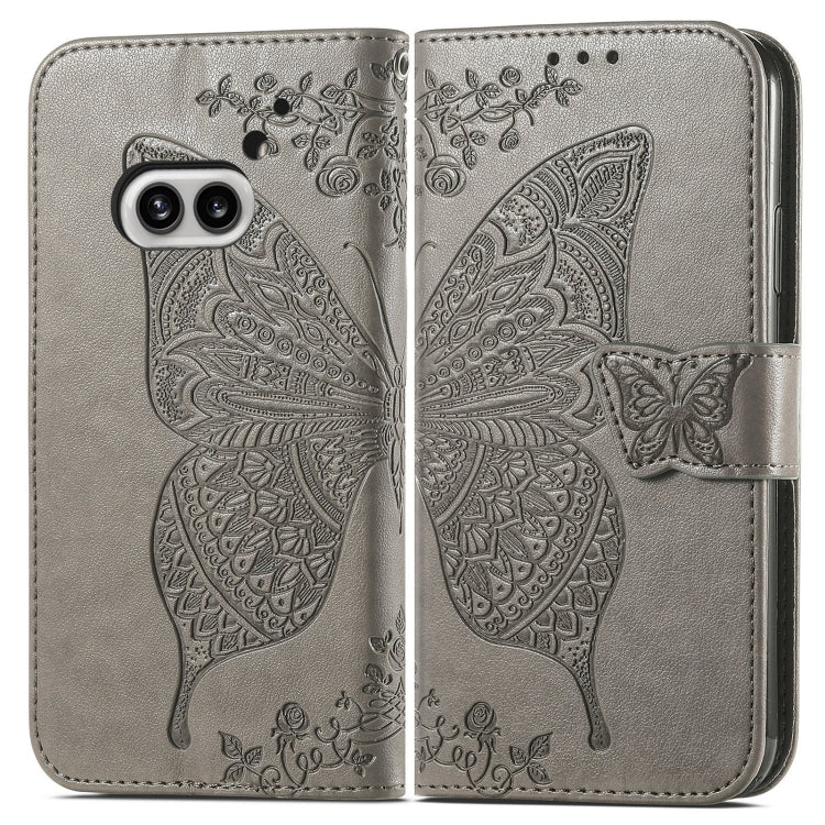 Funda para Nothing Phone 2A de Cuero con Relieve Flor de Amor y Mariposa (Gris)