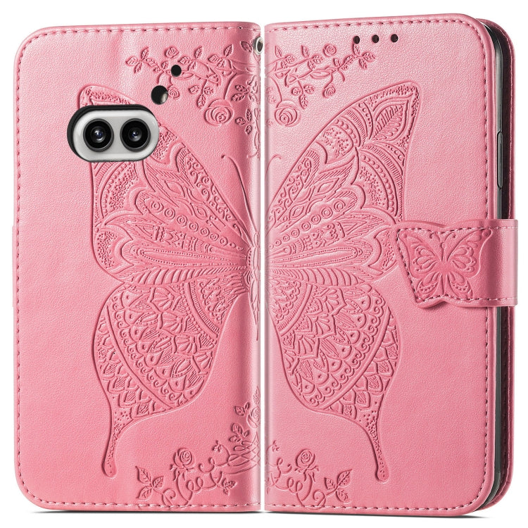 Funda para Nothing Phone 2A de Cuero con Relieve Flor de Amor y Mariposa (Rosa)
