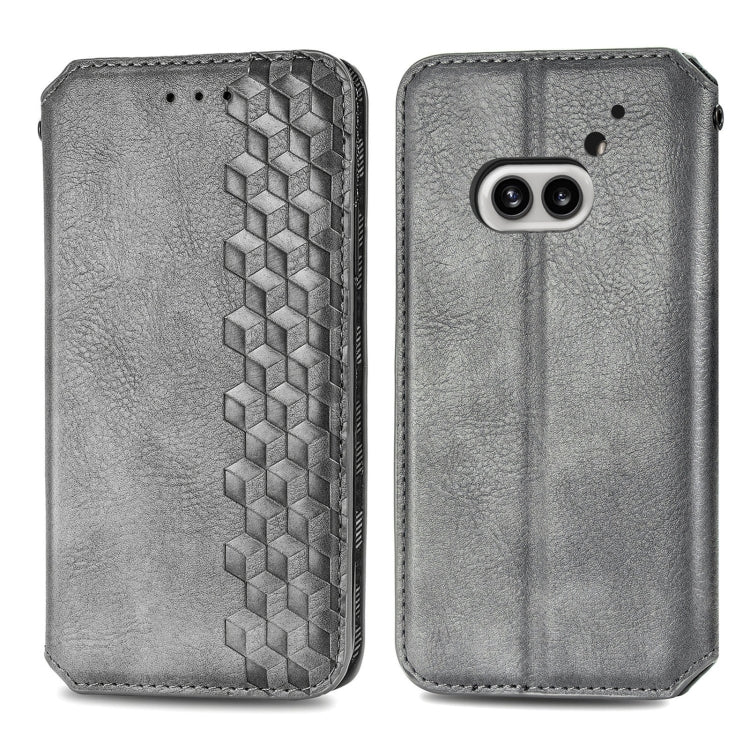 Funda para Nothing Phone 2A de Cuero Magnético Prensado con Rejilla Cúbica (Gris)
