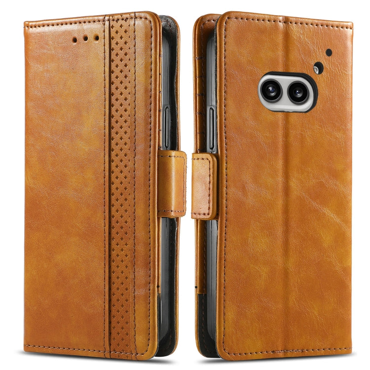 Funda de Cuero Caseneo Splicing para Nothing Phone 2A con Hebilla Magnética Doble (Caqui)