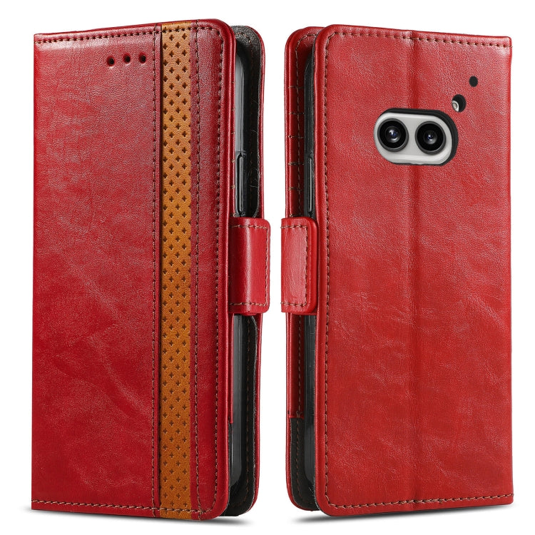 Funda de Cuero Caseneo Splicing para Nothing Phone 2A con Hebilla Magnética Doble (Rojo)