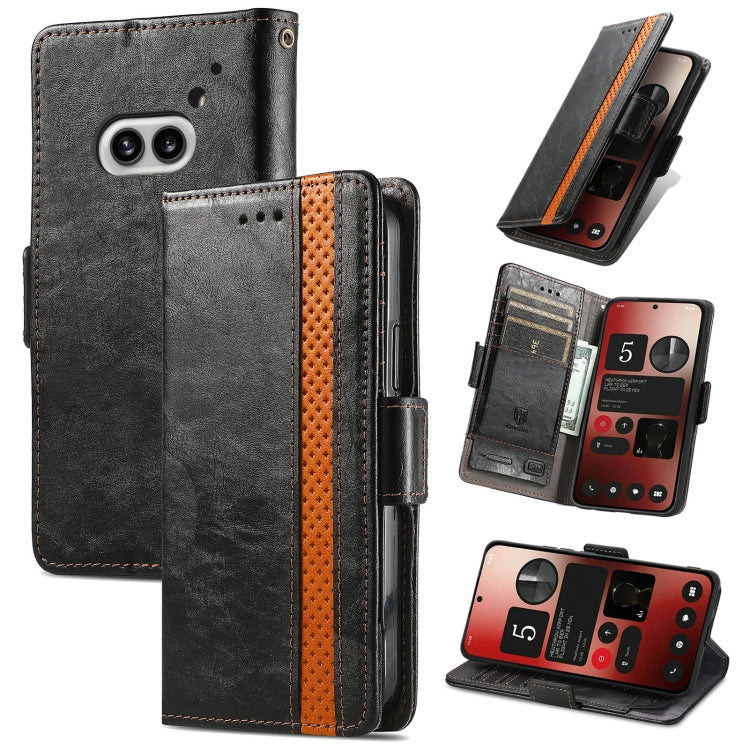 Funda de Cuero Caseneo Splicing para Nothing Phone 2A con Hebilla Magnética Dual (Negro)