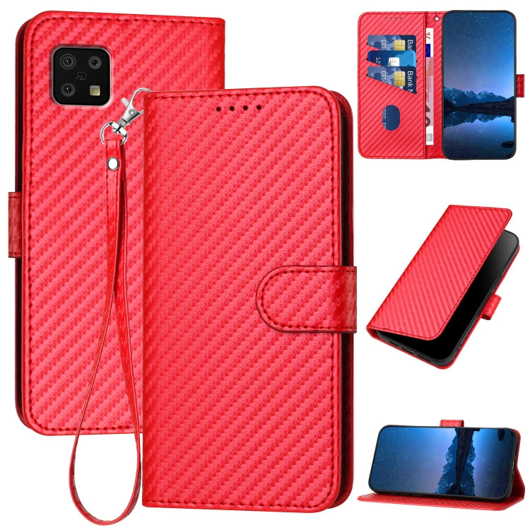 Funda de Cuero para Sharp Aquos Sense6 Yx0070 con Hebilla de Fibra de Carbono y Cordón (Rojo)