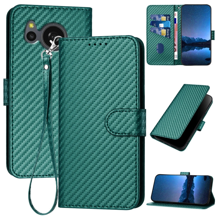 Funda de Cuero para Sharp Aquos Sense7 Yx0070 con Hebilla de Fibra de Carbono y Cordón (Verde Oscuro)