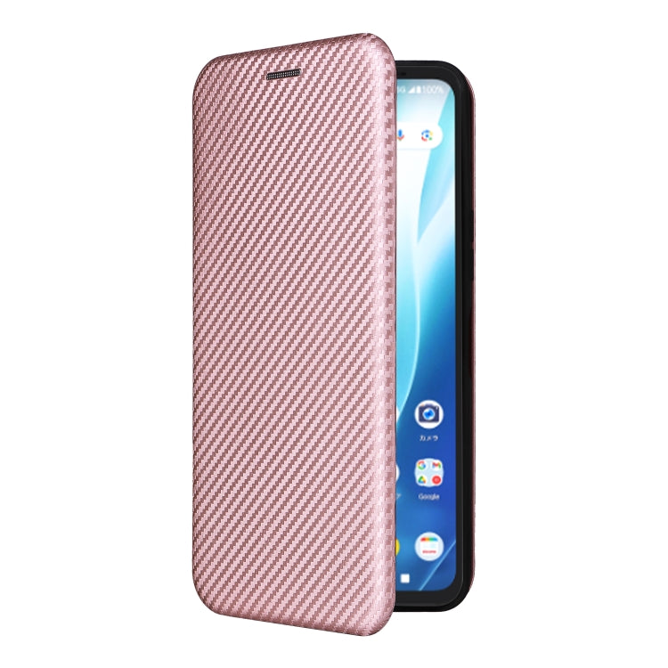 Funda de Cuero para Fujitsu Arrows F-52E We2 Plus con Tapa y Textura de Fibra de Carbono (Rosa)
