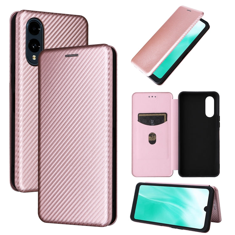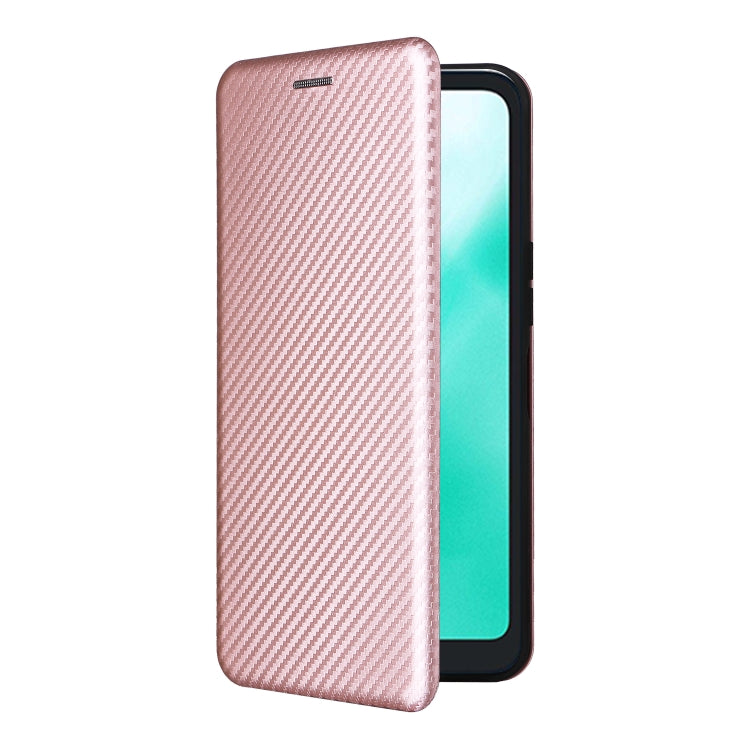 Funda de Cuero para Fujitsu Arrows F-51E We2 Plus con Tapa y Textura de Fibra de Carbono (Rosa)