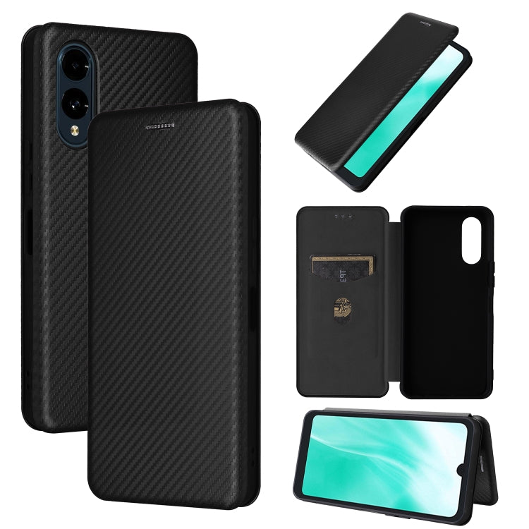 Funda de Cuero con Tapa para Fujitsu Arrows F-51E We2 Plus con Textura de Fibra de Carbono (Negro)