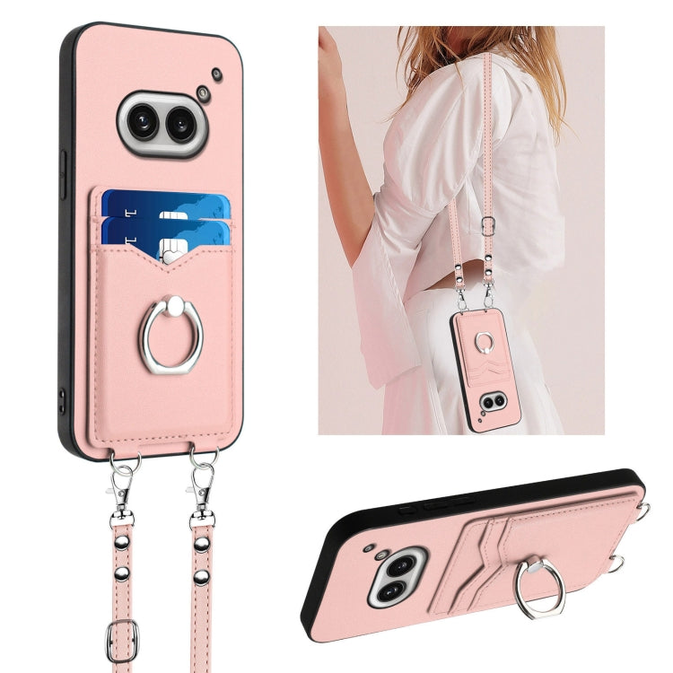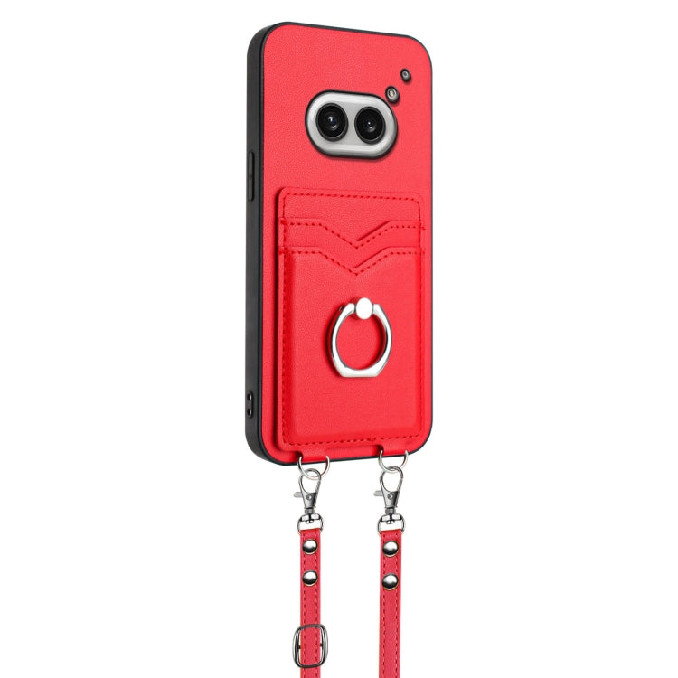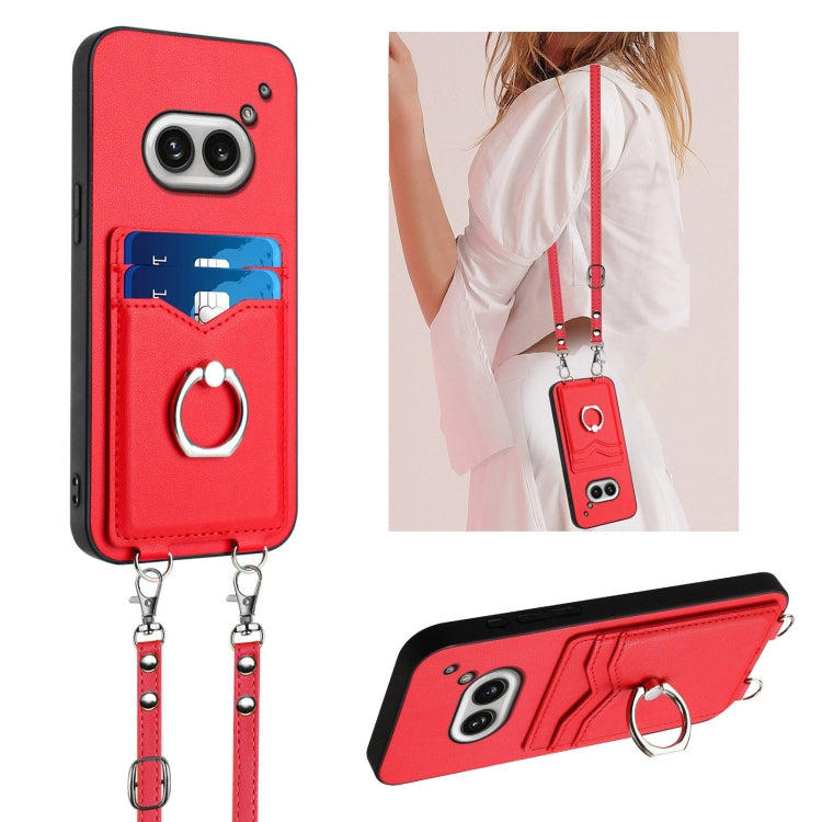 Estuche For Nothing Phone 2A R20 con Tarjetero y Anillo Cruzado con Cuerda (Rojo)