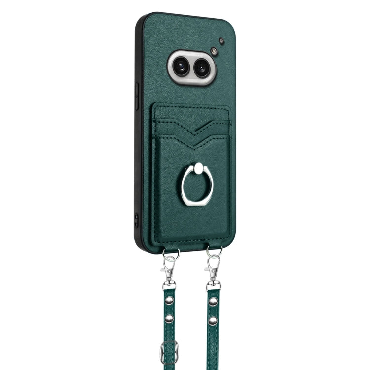 Funda para Nothing Phone 2A R20 con Tarjetero y Anillo Cruzado con Cuerda (Verde)