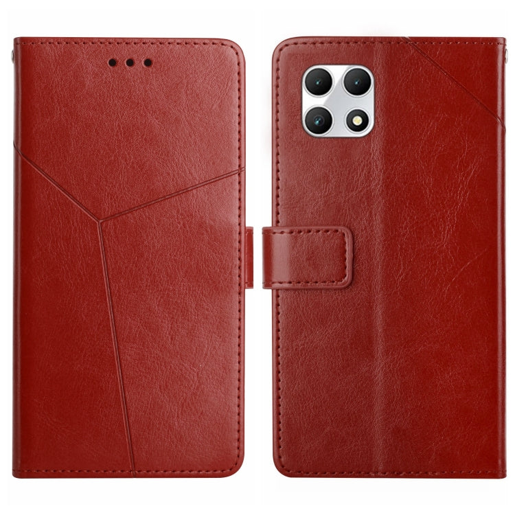 Funda de Cuero con Tapa para T-Mobile Revvl 7 5G con Patrón en Forma de Y (Marrón)