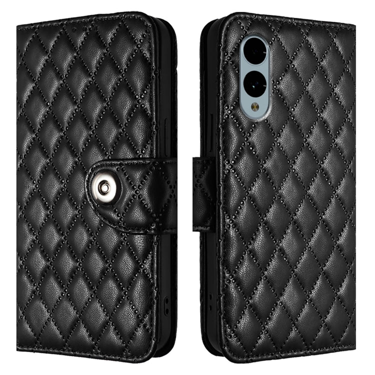 Funda para Sharp Aquos Wish4 Sh-52E con Tapa de Cuero Textura Rómbica y Cordón (Negro)