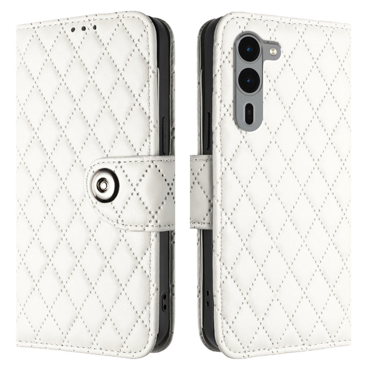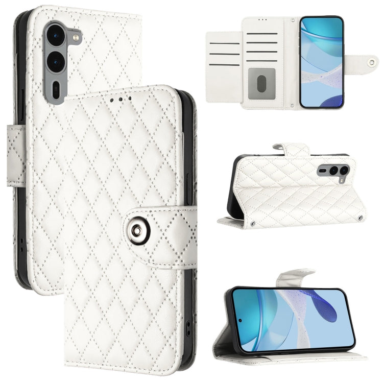 Funda de Cuero para T-Mobile Revvl 7 5G con Tapa Textura Rómbica y Cordón (Blanco)