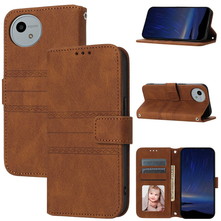 Funda de Cuero para Sharp Aquos Wish 4 con Sensación de Piel y Rayas En Relieve (Marrón)