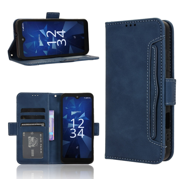 Funda de Cuero Textura Piel de Becerro para Kyocera Digno Sx4 con Ranuras para Tarjetas (Azul)