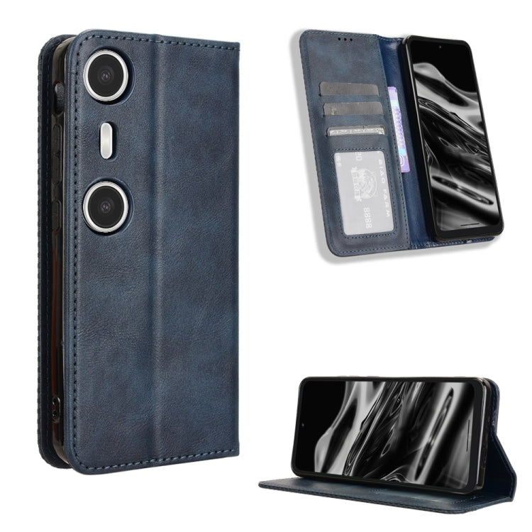 Funda de Cuero para T-Mobile Revvl 7 5G con Textura Retro y Hebilla Magnética (Azul)