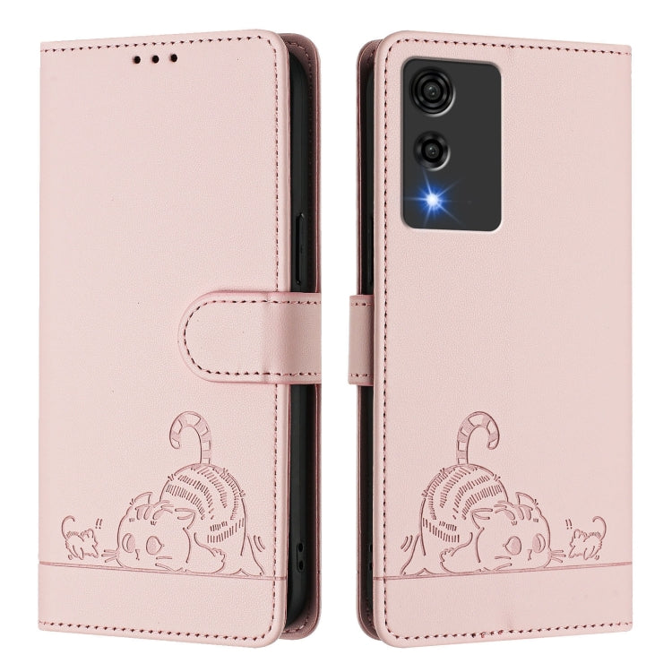 Funda de Cuero Rfid para Cubot A10 con Estampado de Rata y Gato en Relieve y Cordón (Rosa)