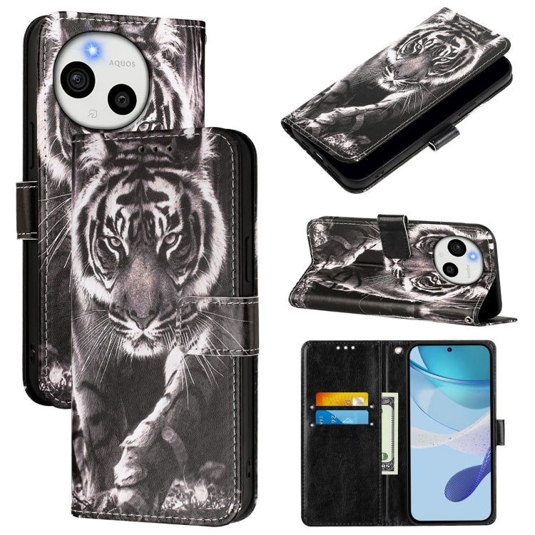 Funda de Cuero para Sharp Aquos Sense9 con Diseño Tigre Blanco y Negro